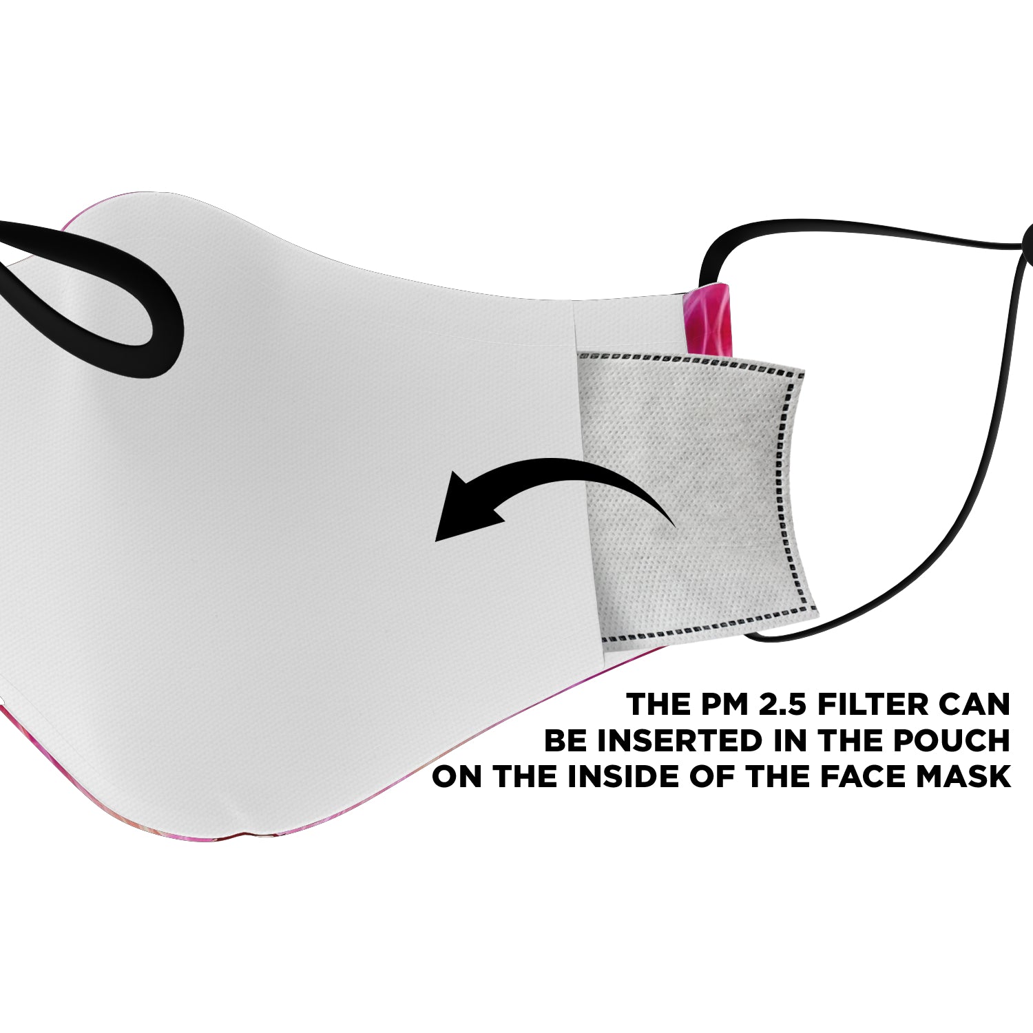 Look fashionable with this custom printed face mask. It comes with easily adjustable ear loop straps to fit all face shapes, as well as a shapeable hidden nose clip for that perfect fit. The outer surface is printed on a premium breathable polyester fabric that won't irritate your skin. While the inner surface is made from a soft breathable cotton fabric. On the inside of the face mask you can find a pouch where you can add any of your own filters. Each face mask also comes with 2 pieces of PM 2.5 filters that can be placed inside the pouch.