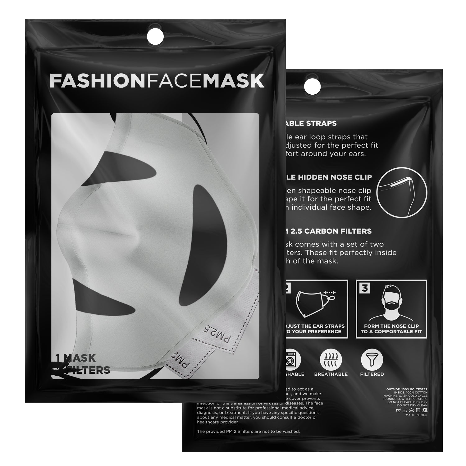 Look fashionable with this custom printed face mask. It comes with easily adjustable ear loop straps to fit all face shapes, as well as a shapeable hidden nose clip for that perfect fit. The outer surface is printed on a premium breathable polyester fabric that won't irritate your skin. While the inner surface is made from a soft breathable cotton fabric. On the inside of the face mask you can find a pouch where you can add any of your own filters. Each face mask also comes with 2 pieces of PM 2.5 filters that can be placed inside the pouch.