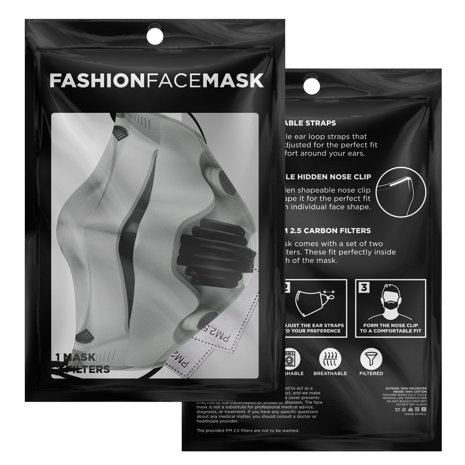 Look fashionable with this custom printed face mask. It comes with easily adjustable ear loop straps to fit all face shapes, as well as a shapeable hidden nose clip for that perfect fit. The outer surface is printed on a premium breathable polyester fabric that won't irritate your skin. While the inner surface is made from a soft breathable cotton fabric. On the inside of the face mask you can find a pouch where you can add any of your own filters. Each face mask also comes with 2 pieces of PM 2.5 filters that can be placed inside the pouch.